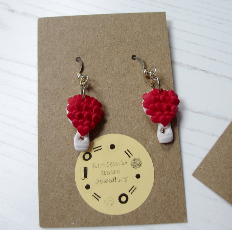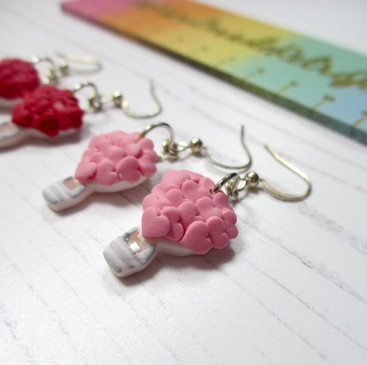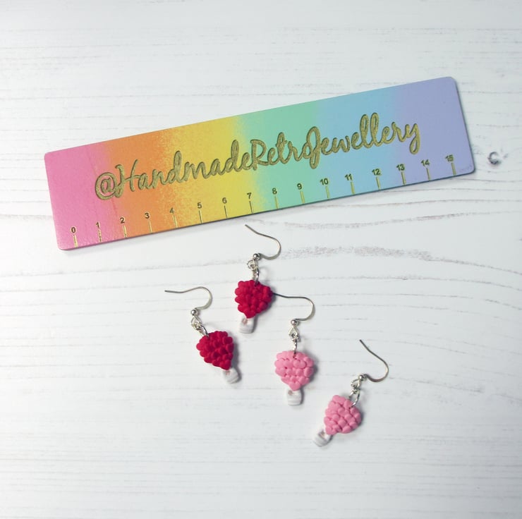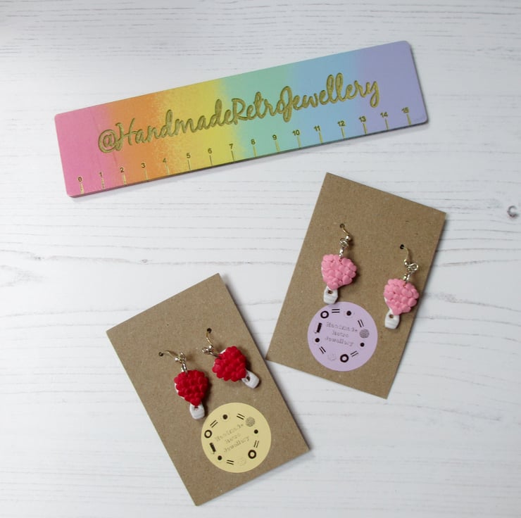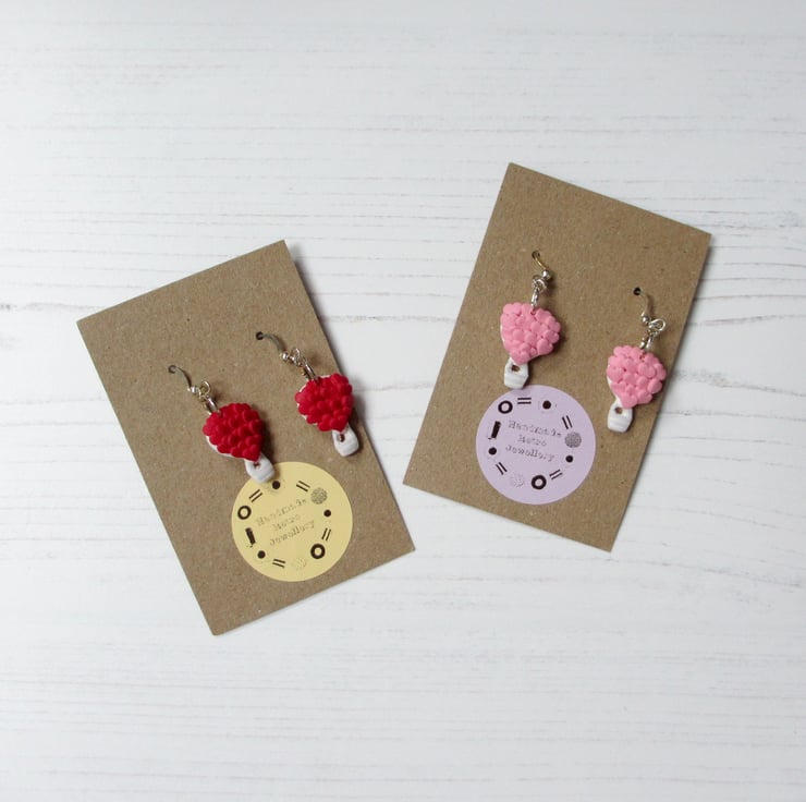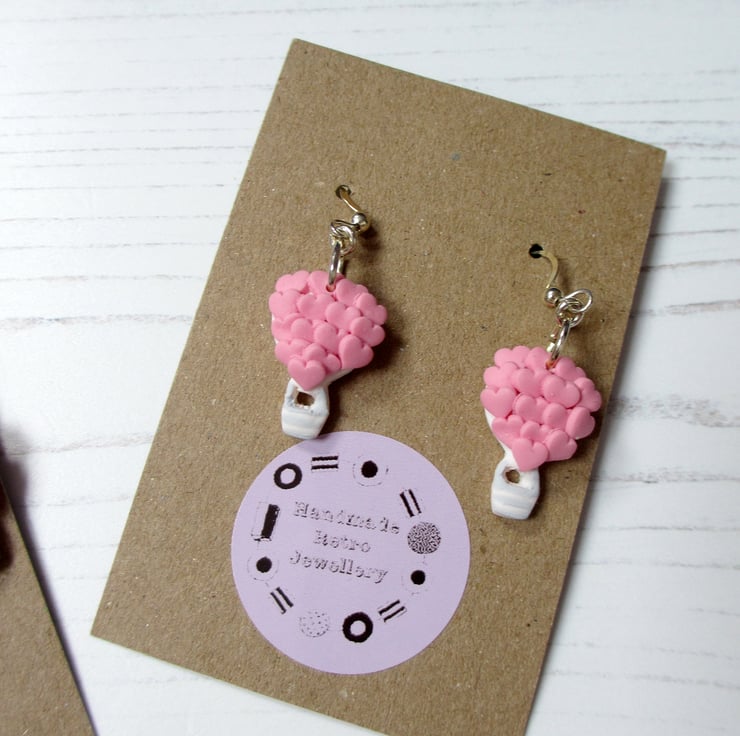 All items are handmade in Britain by myself. Price is for ONE pair of earrings, choose from Pink Trucks with red hearts, or Lilac trucks with pink hearts