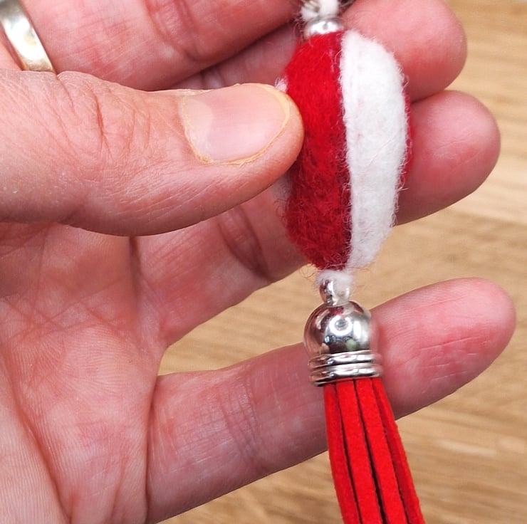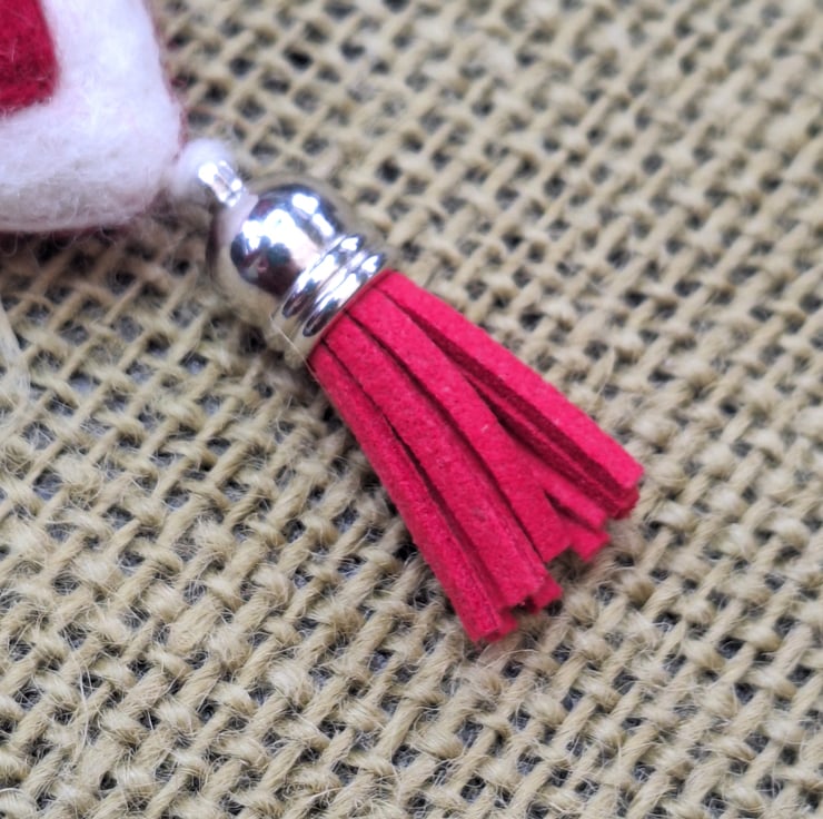- Mini tassel charm – approx. 30mm long, made from bright red faux suede with a silver metal cap