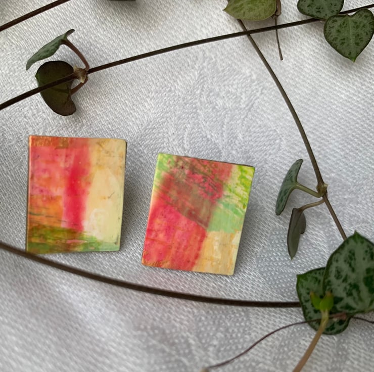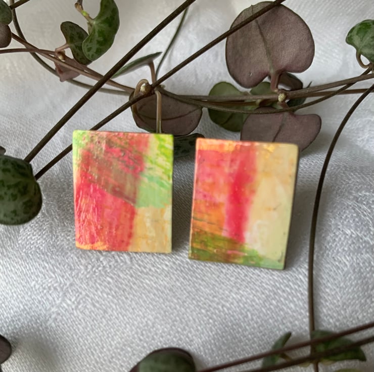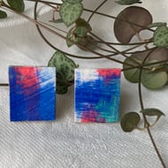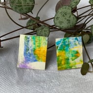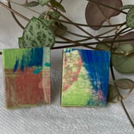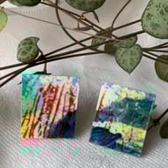 Handcrafted individual pieces of miniature abstract art, combined with its non identical twin, to make a unique pair of earrings. Posts are Sterling Silver to be suitable for sensitive skin.