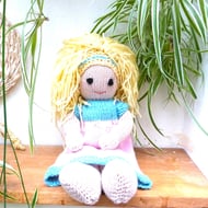 i made the first of these dolls for my granddaughter, then I got some orders as they are so adorable and soft. Lovely soft wool body and dress, and wool blend hair. Really soft and cuddly. I love creating them and I have lots of beautiful different colours for their dresses