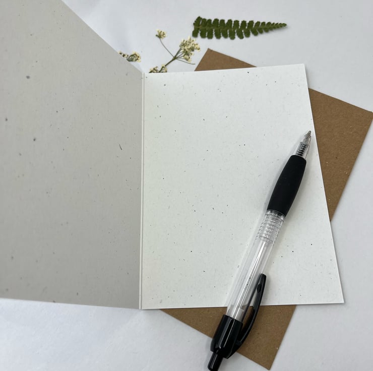 The oat fleck card is A6 (10.5 x 14.8 cm) in size and is made in the UK from recycled materials.