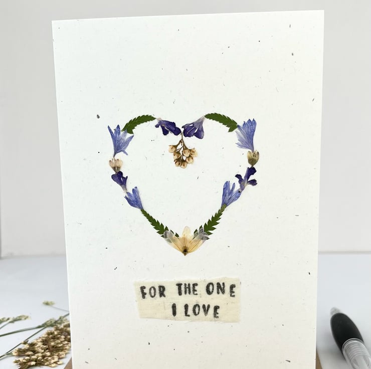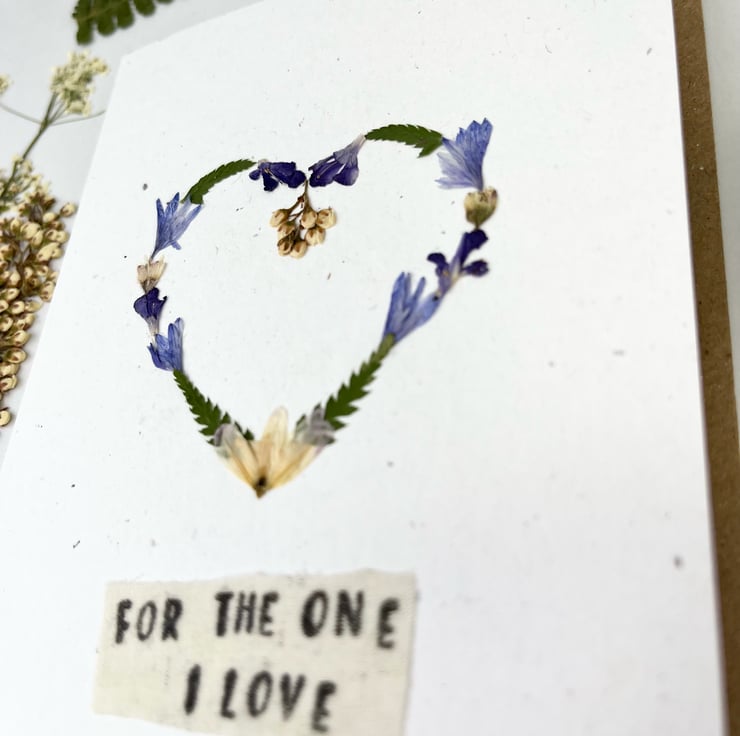 This lovingly handmade real pressed flower greeting card is made using flowers grown in our garden. With a hand printed message of love.