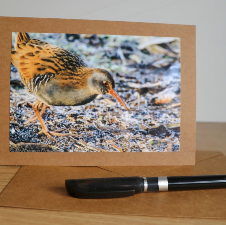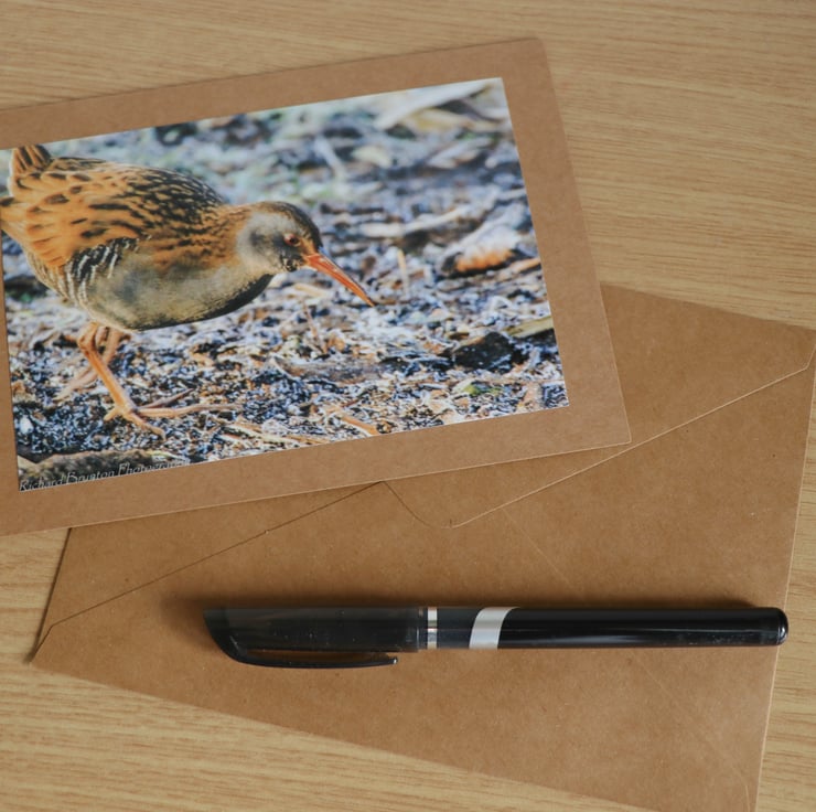 An image of the very secretive but lovely Water Rail. Sometimes heard but not very often seen. This is from an original image taken by myself on a frosty wintery morning. This is a 7 x 5 inch Greetings Card, professionally printed and mounted on Stock Card, and includes an eco friendly kraft envelope.. This has been left blank for you to include your own personal message.