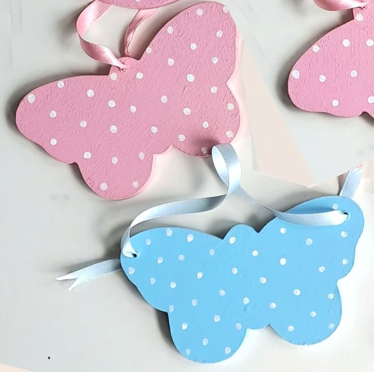 These attractive butterfly cot hangers measure 11.5 x 7 cm, and are hung with matching satin ribbon.