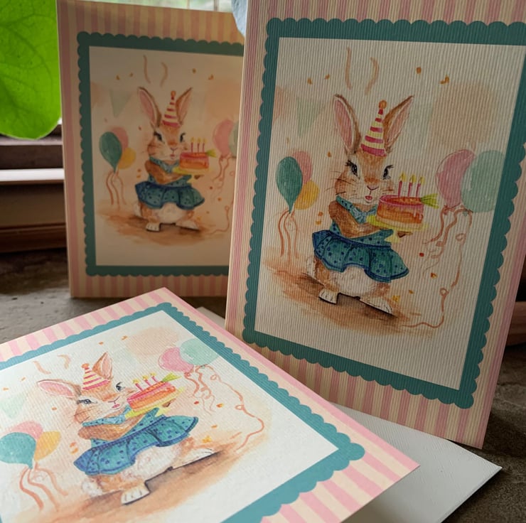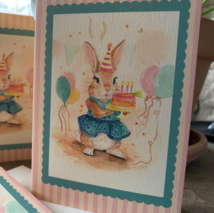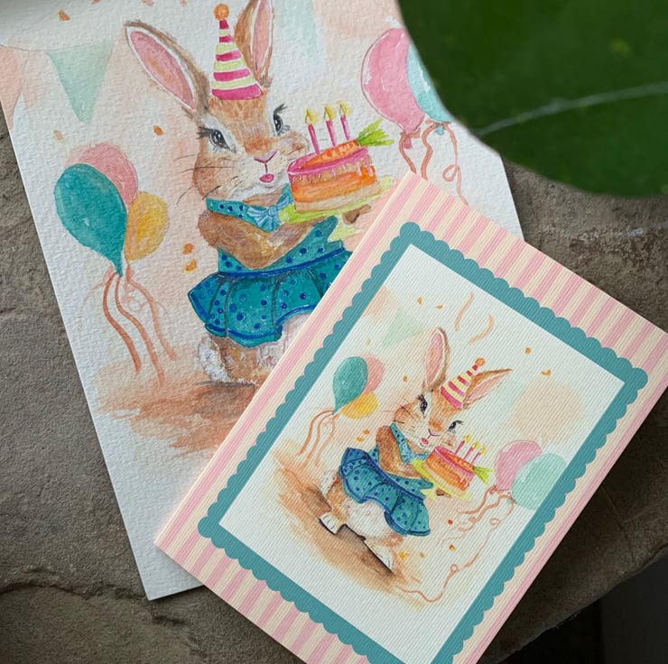 This sweet A6 card features my original hand-painted watercolour bunny illustration, lovingly reproduced as a high-quality art card.