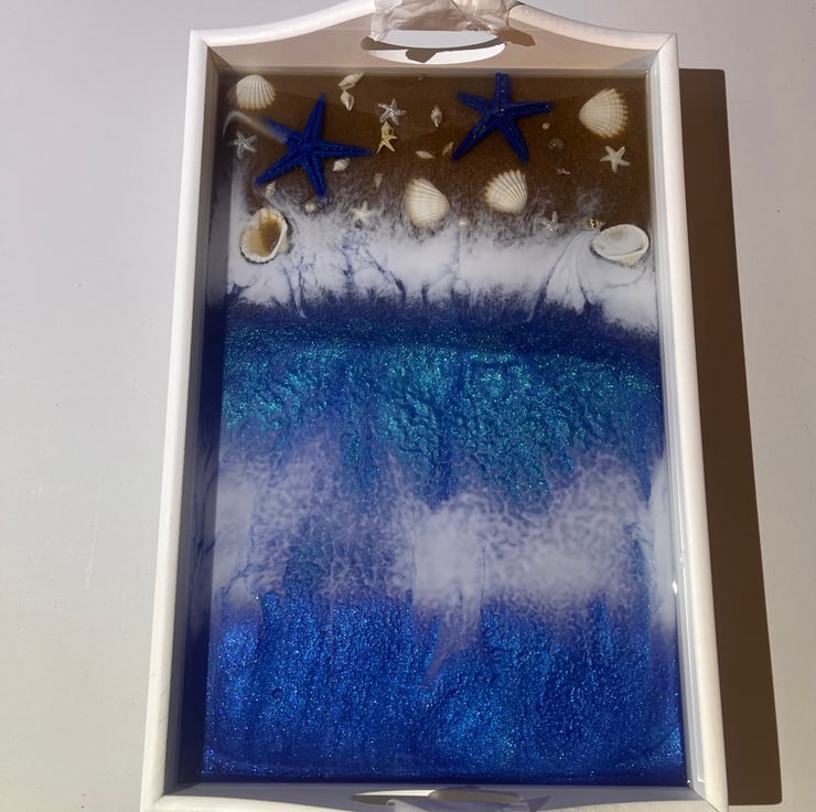 Beautifully decorated in a seaside theme and complete with integrated handles, it’s ideal for serving meals, working from the sofa, or enjoying a relaxed moment in comfort. A versatile piece that brings understated luxury to everyday living.