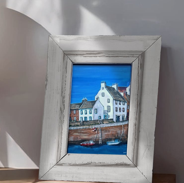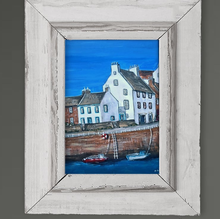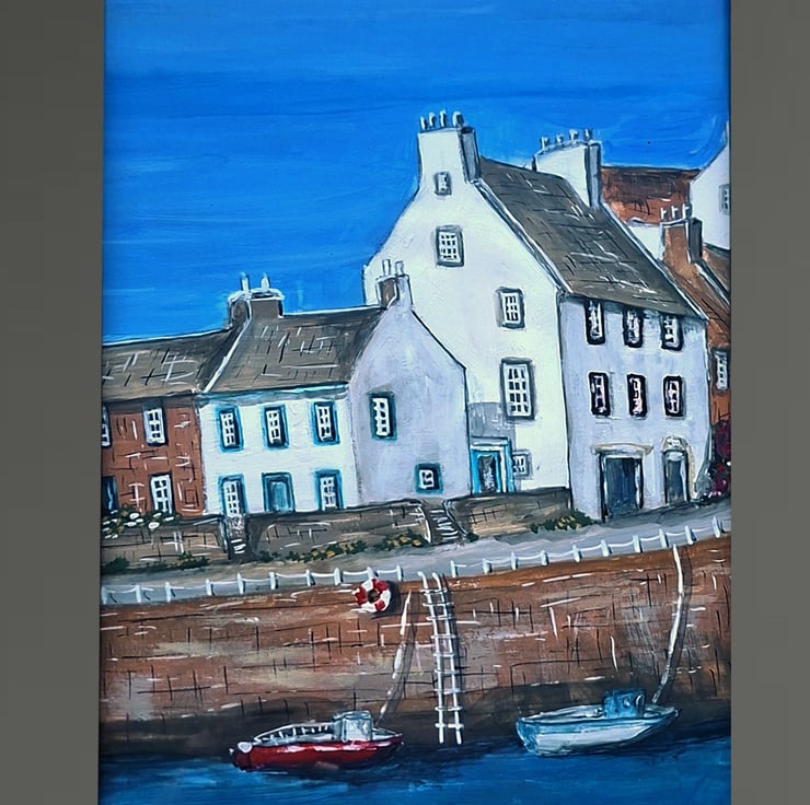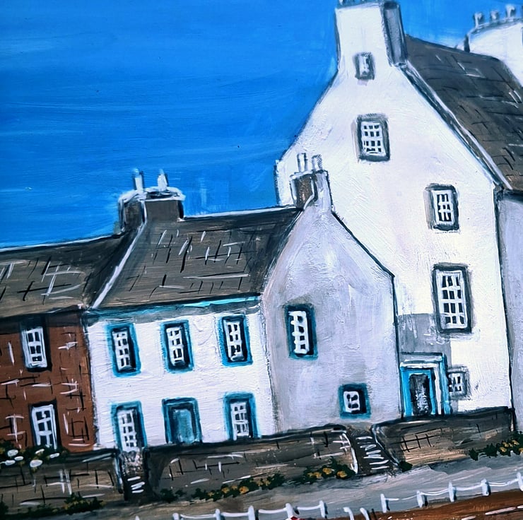 Crail holds a special place in my heart. Every visit brings a warm welcome; it's a village always welcoming, always peaceful, and always quiet. I'm constantly inspired by its vibrant palette—from the colorful port doors to the shimmering blue of the North Sea. This work is my tribute to the peaceful and vibrant soul of the eastern Neuk.