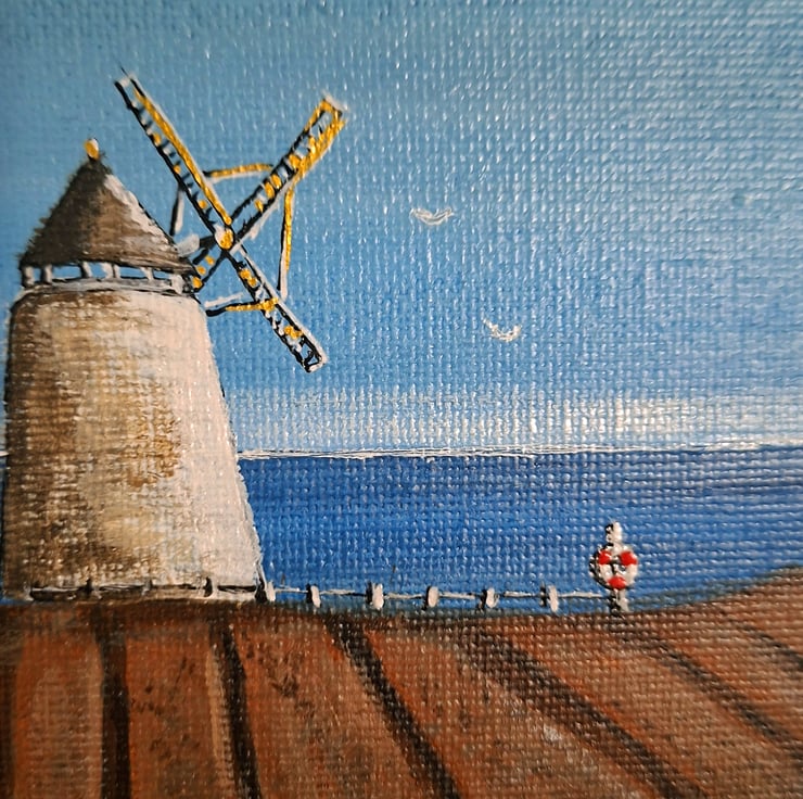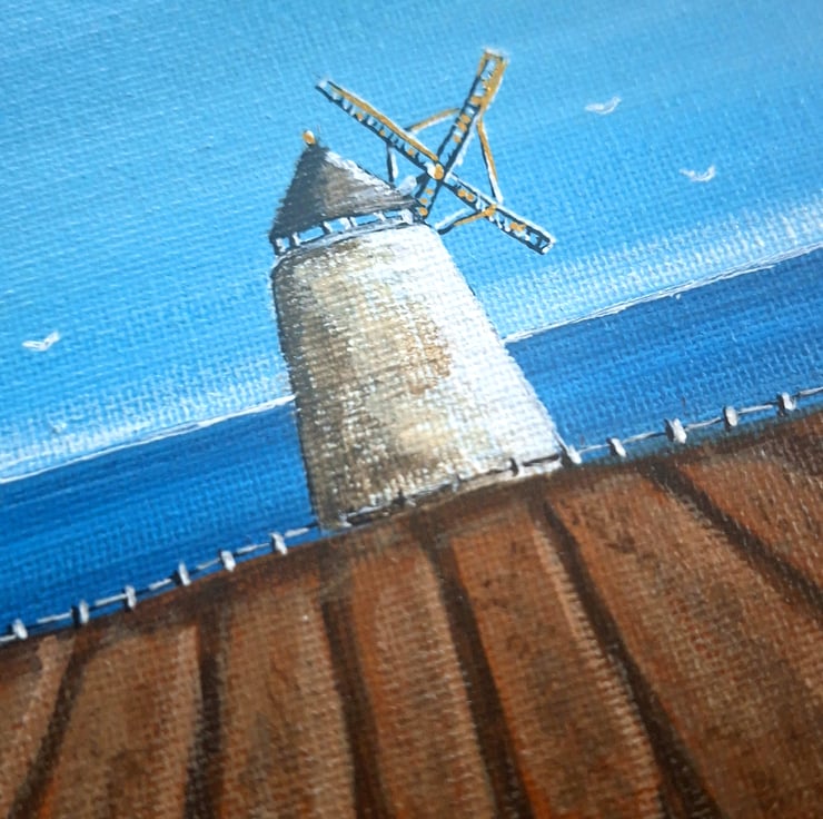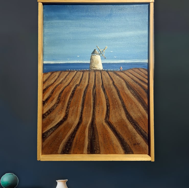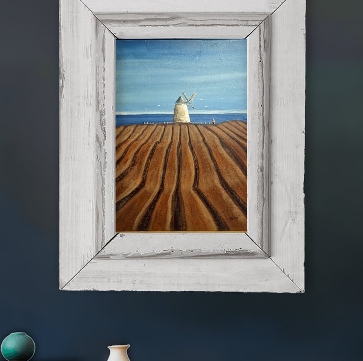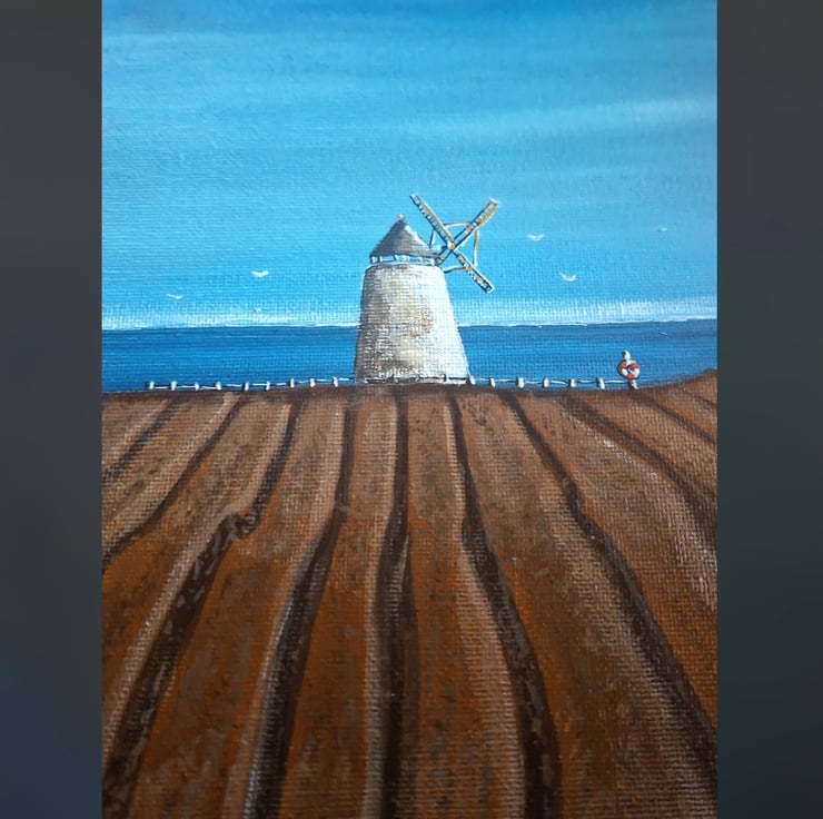 Painting shows real place, one of symbols of Fife - Windmill St Monan.