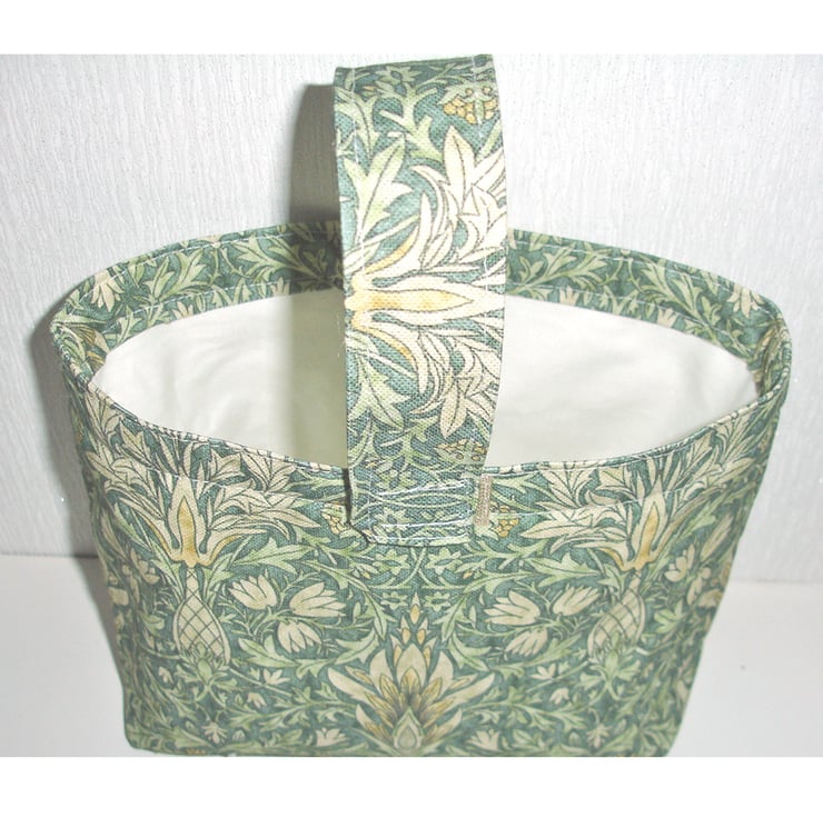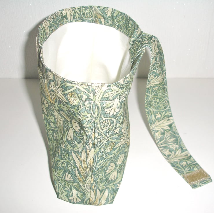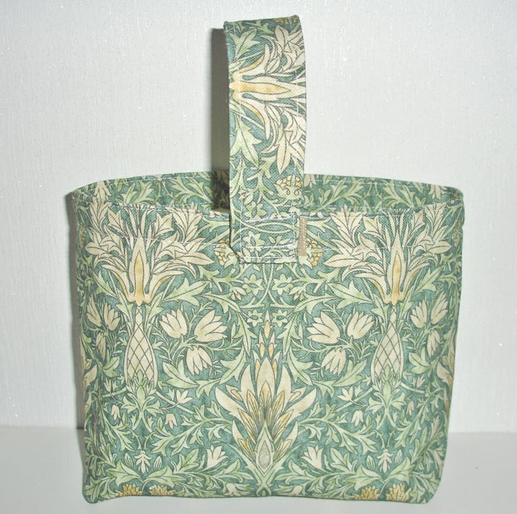 This bag is lined in a plain co-ordinating fabric, all seams are concealed and it has a gusset base for a stand-up look, whether full or empty.