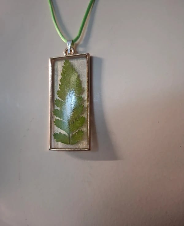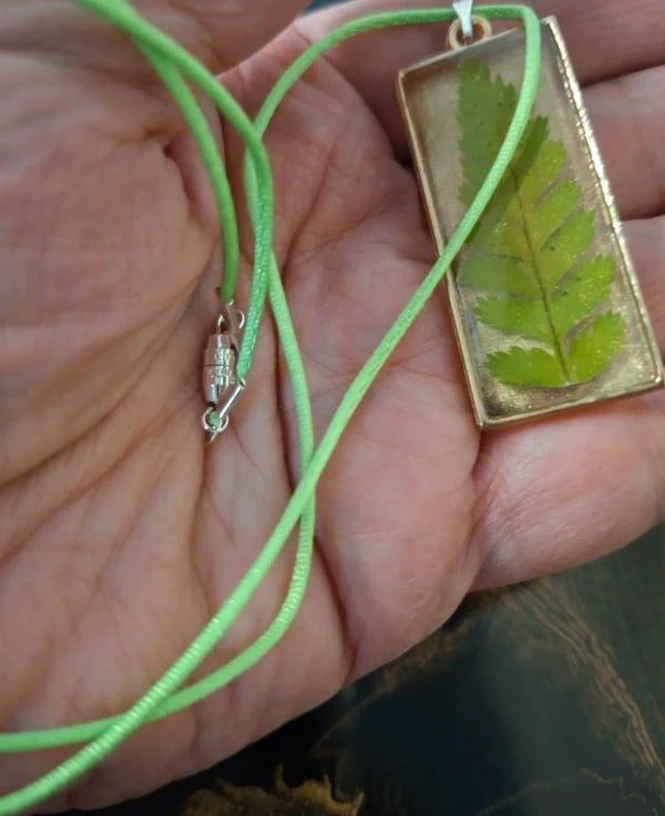 The Fern Leaf is from my own garden, pressed dried and capture in resin to enjoy for a long time.