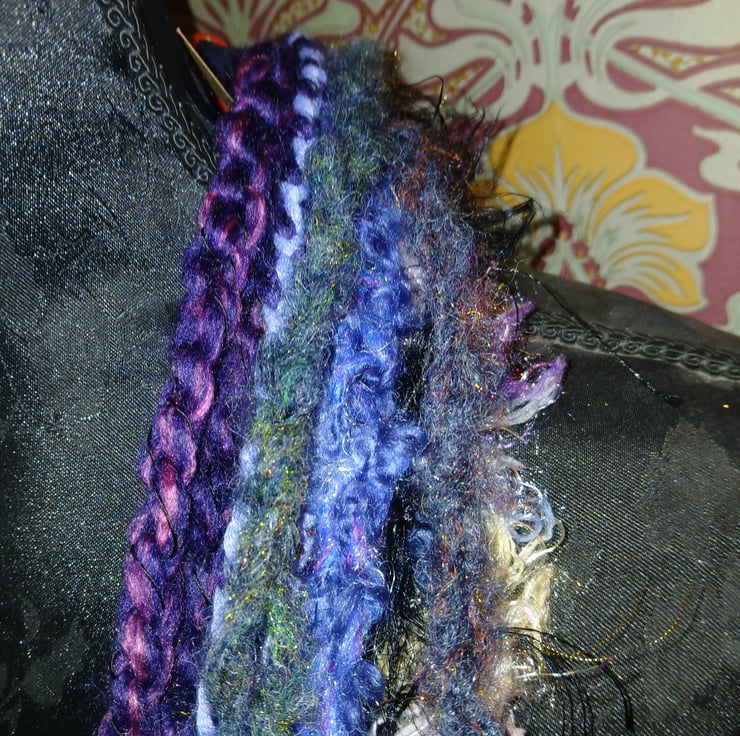 Some beautiful wool I aquired at a Craft destash event inspired this scarf. I loved the blend of colours, and it had a magical feel to it, so I had to make a scarf with it as soon as I got home!