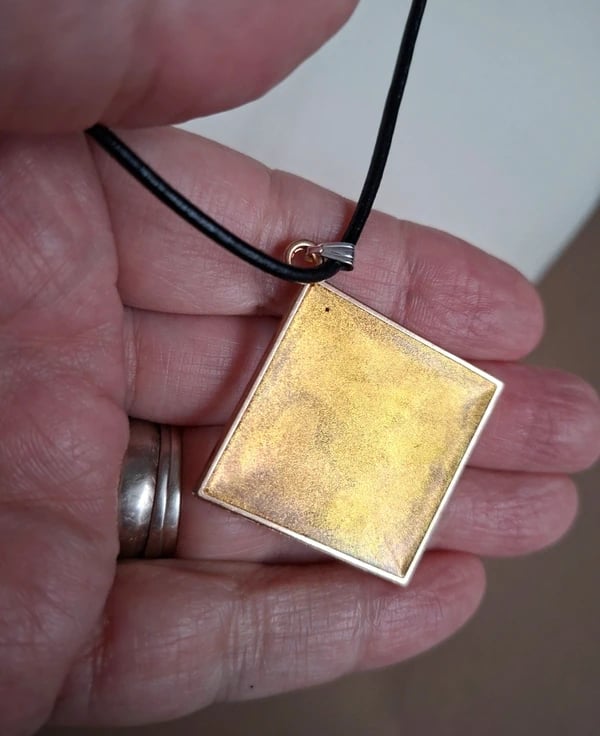 Hand made by me and the background pattern is unique due to the layers of resin and metallic coloured paint and the setting of the layers.