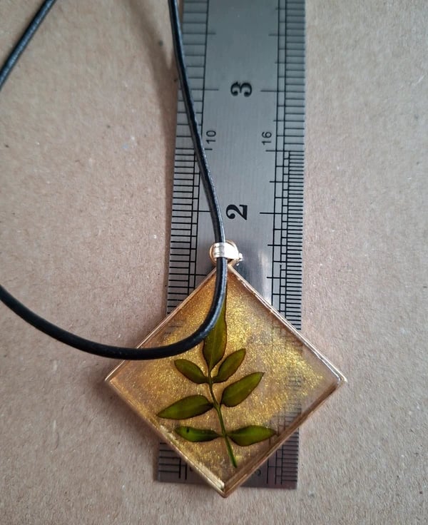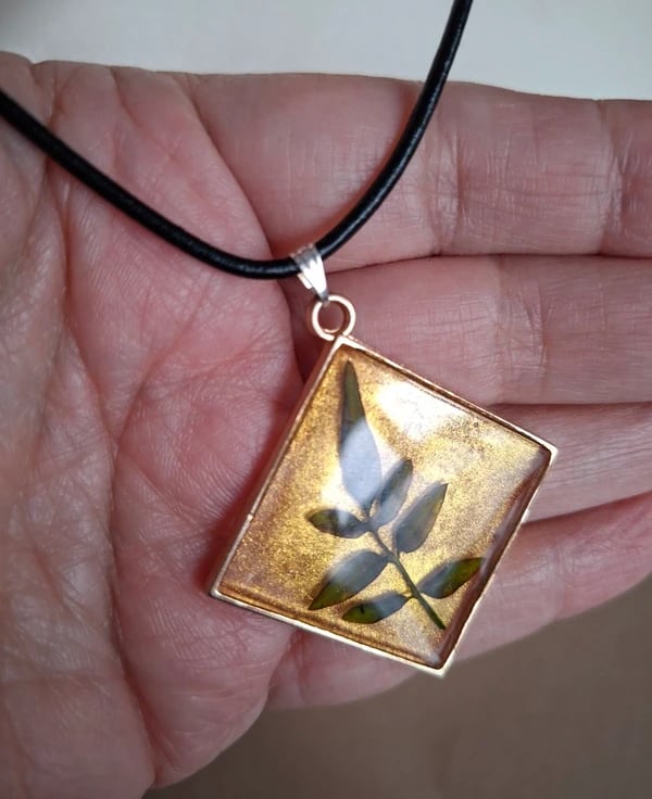 Large Tilted square real Jasmine Leaf dried and pressed set in Resin to make this Pretty Pendant. From my own garden.