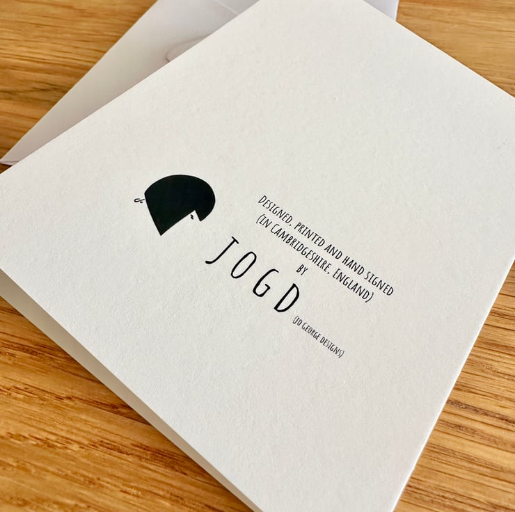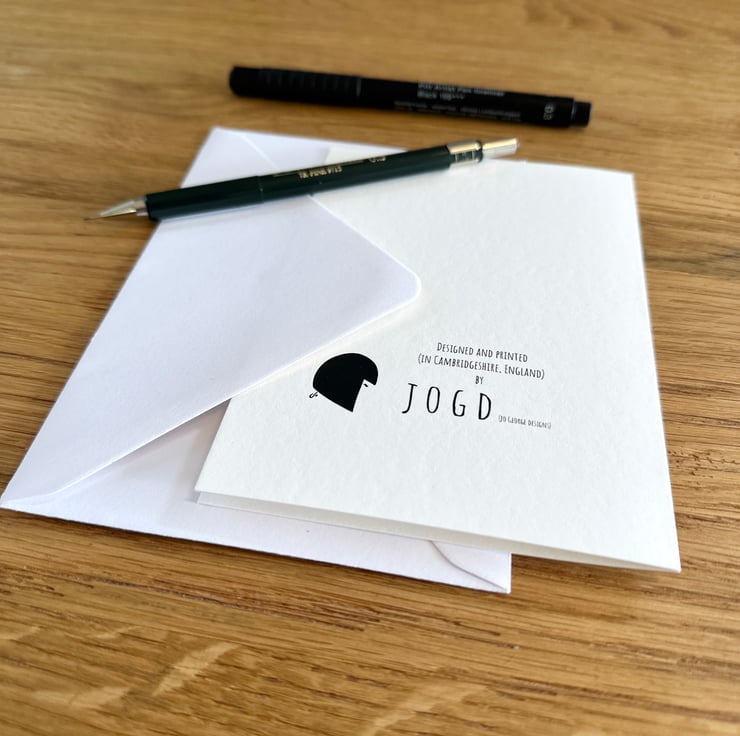 Printed by me using archival inks onto beautiful bright ivory cotton rag card. Each greeting card incorporates a natural matt insert ready for your message inside and is supplied with a high quality white envelope. I hand sign all cards on the front.
