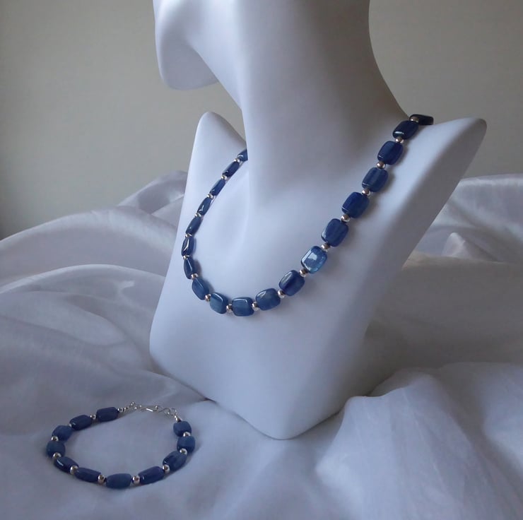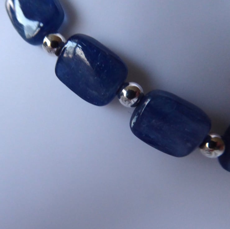 The rectangular Kyanite gemstones are accented with sterling silver 4mm beads and the necklace is finished with sterling silver fittings including a hook & eye clasp