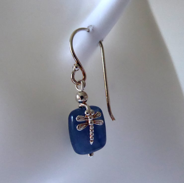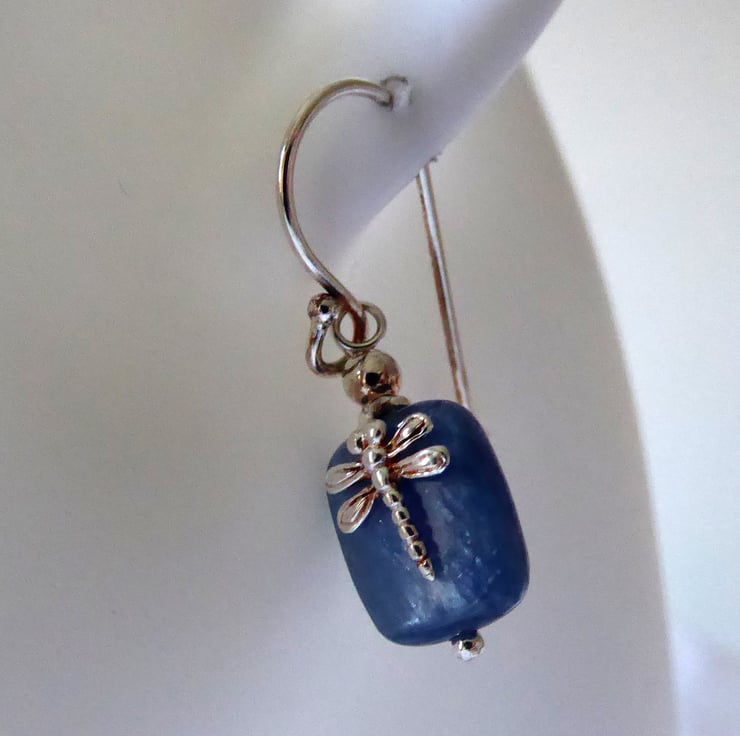 The rectangular Kyanite gemstones are accented with sterling silver leaf on one side and dragonfly on the other. You can gently twist the bead round to suit your preference, though I suggest that you do not do this too aften.