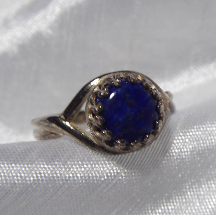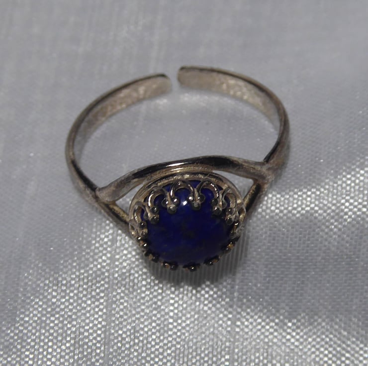 Lapis Lazuli & Sterling Silver Gallery Wire Set Adjustable Ring