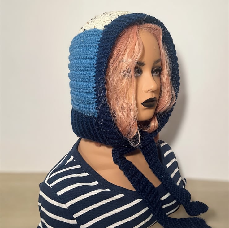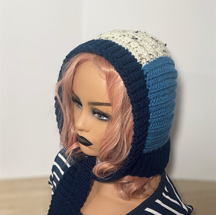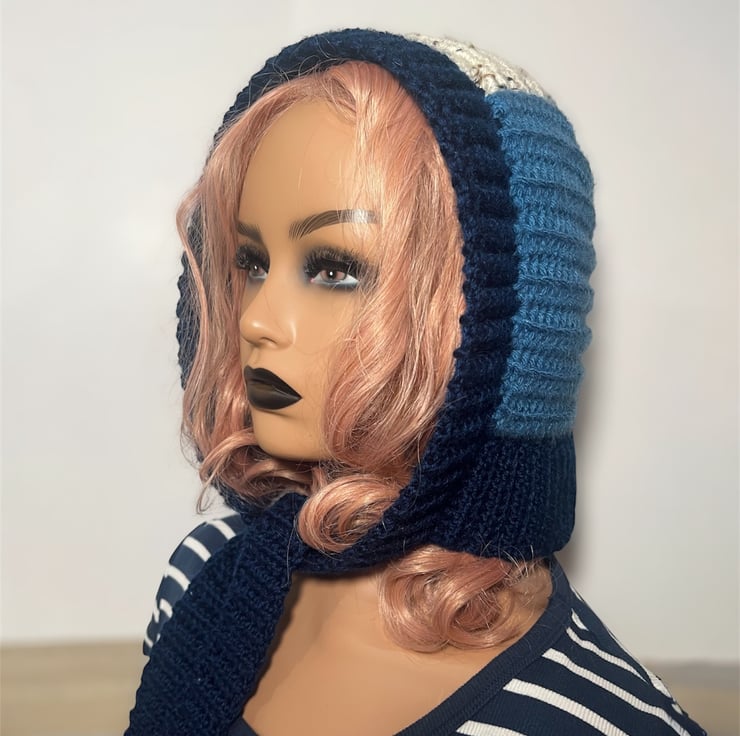 Lovely handmade crochet hooded balaclava is designed to cover the head and neck for warmth