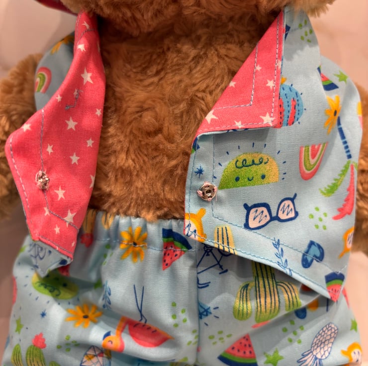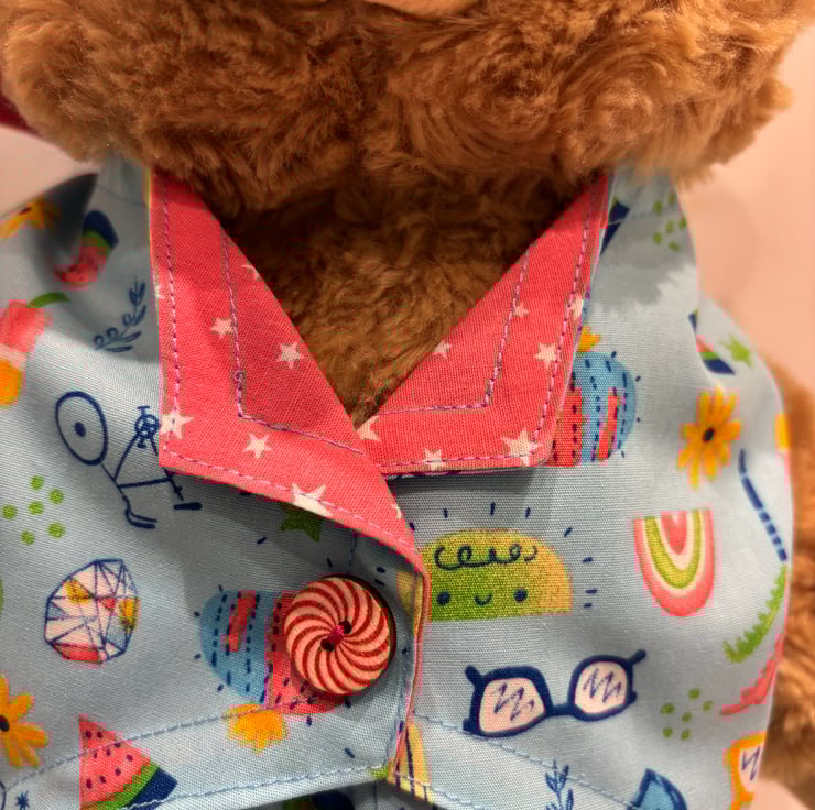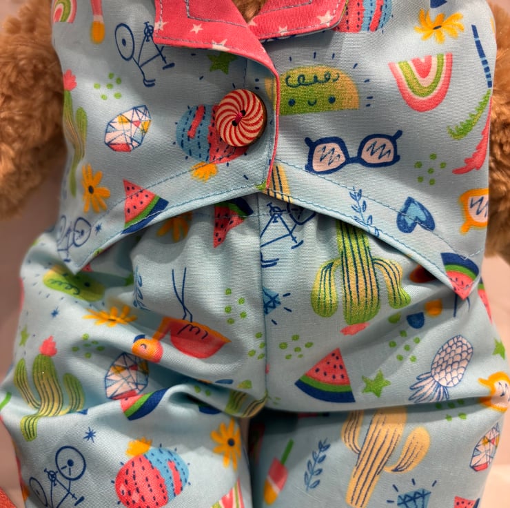The waistcoat is closed with a snap fastener and a painted wooden button.