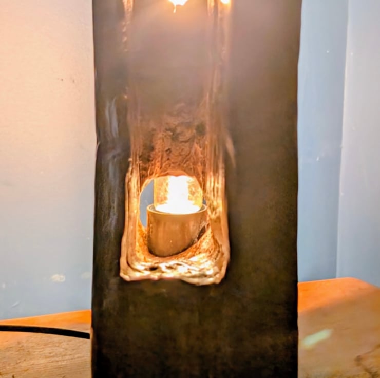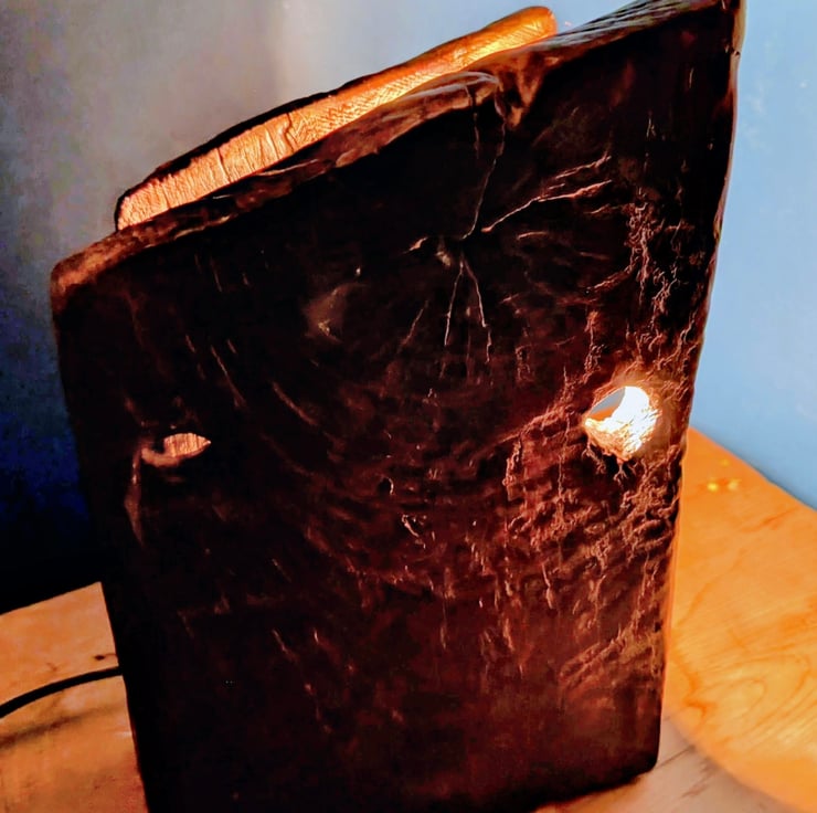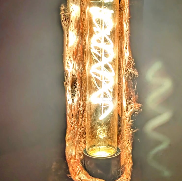 This unique lamp is made from part of an oak beam salvaged from a 17th century English cottage (don't worry - the cottage is still standing). A rich, dark brown colour finished with a clear wax to highlight the grain.