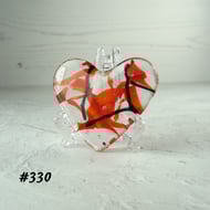 Red and clear heart fused glass pocket hug with stand 5x4.5cm (325)