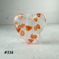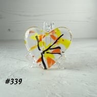 Orange and yellow heart fused glass pocket hug with stand 5x4.5cm (301)