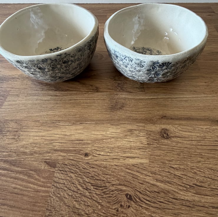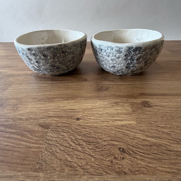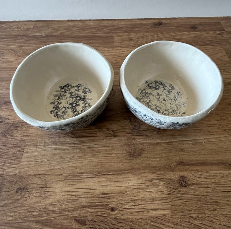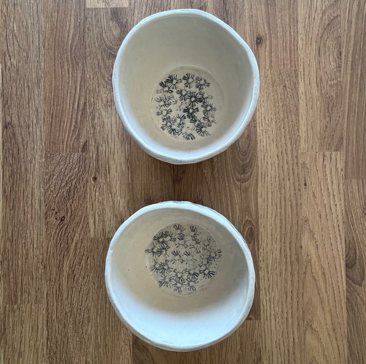 These handmade ceramic dishes were created using a real poppy head which was pressed into the clay, capturing the intricate natural texture. To enhance the delicate details of the impression, black underglaze was applied, and finished with a clear glaze that allows the organic beauty of the clay and imprint to remain the focus.