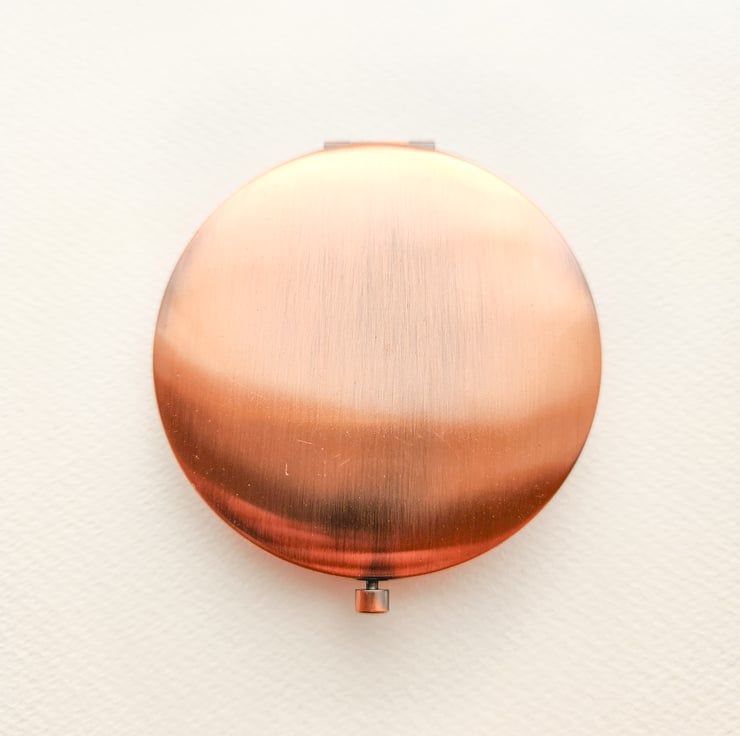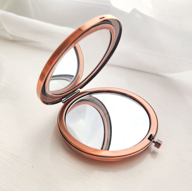The compact opens to reveal two mirrors: one standard mirror and one magnifying mirror, perfect for everyday use.