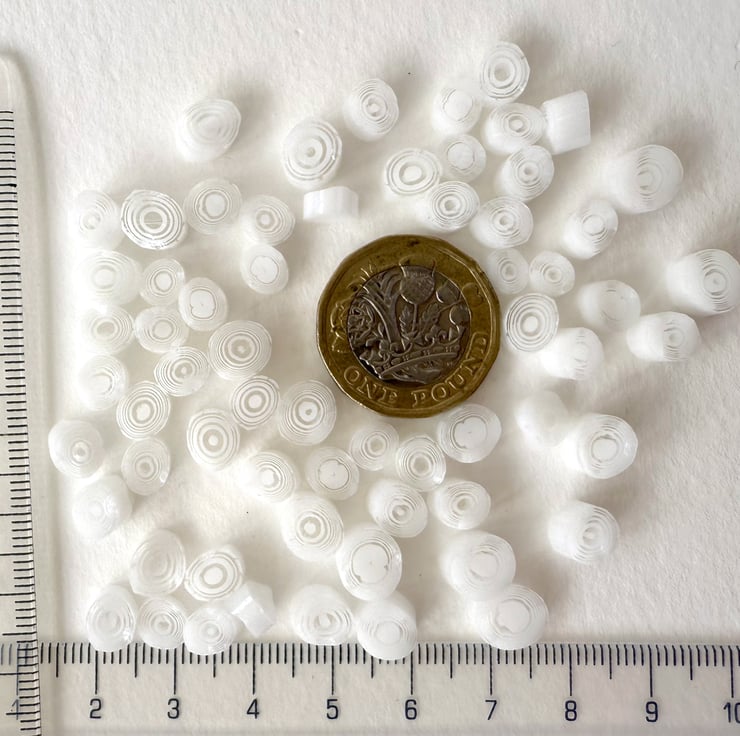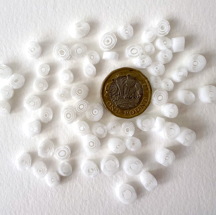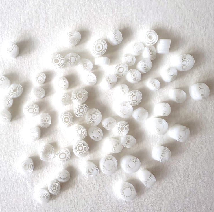 Concentric circles pattern murrini in white and clear glass. Handmade in the UK with 100% Bullseye glass.