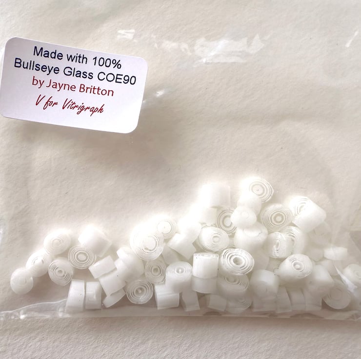 20g white concentric circles murrini made with Bullseye 90coe glass
