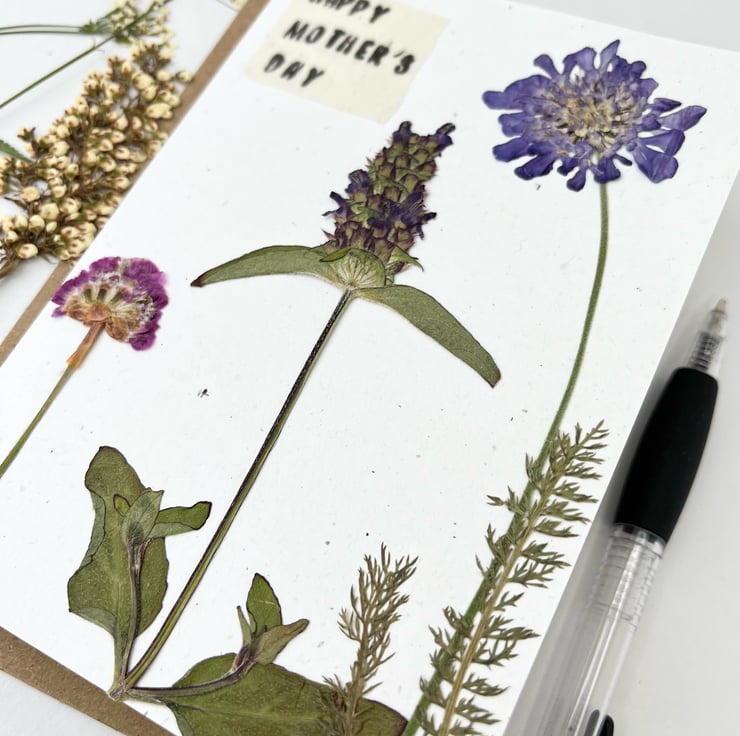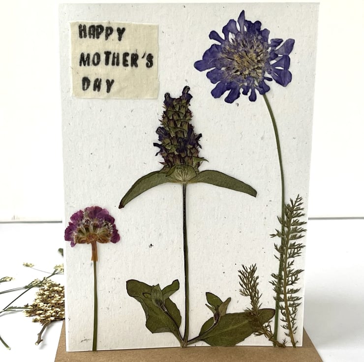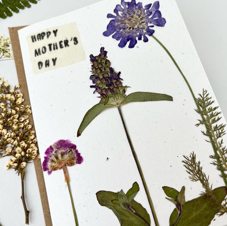 This lovingly handmade real pressed flower greeting card is made using flowers grown in our garden in Hampshire. With a hand printed message.