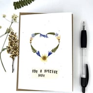 Handmade Real Pressed Flower, Geum, Mother's Day Greeting Card