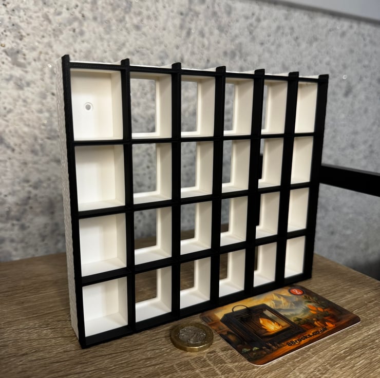 Shelf with 24 compartments plus 6 extra spaces on the top row a total of 30