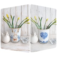 Decorated with a Decoupage of blue & pink florals with a matching wooden heart attached.