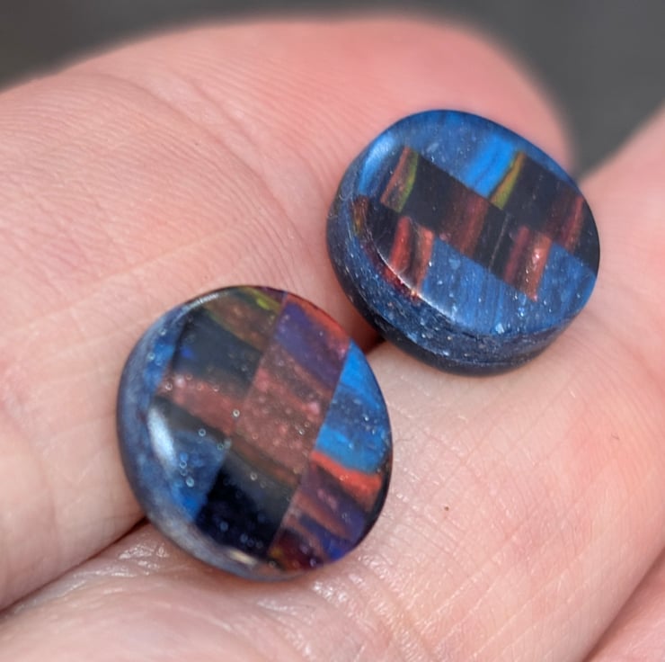 These studs have been sanded and buffed to give a good sheen, which further amplifies the hues of colour.