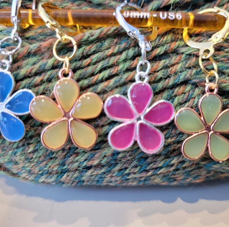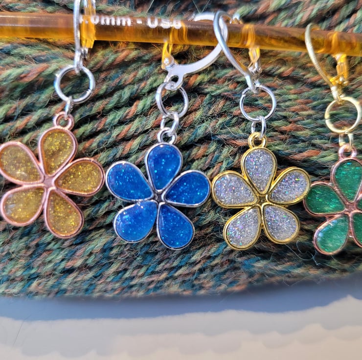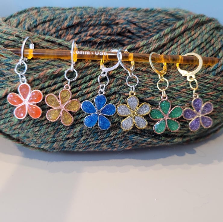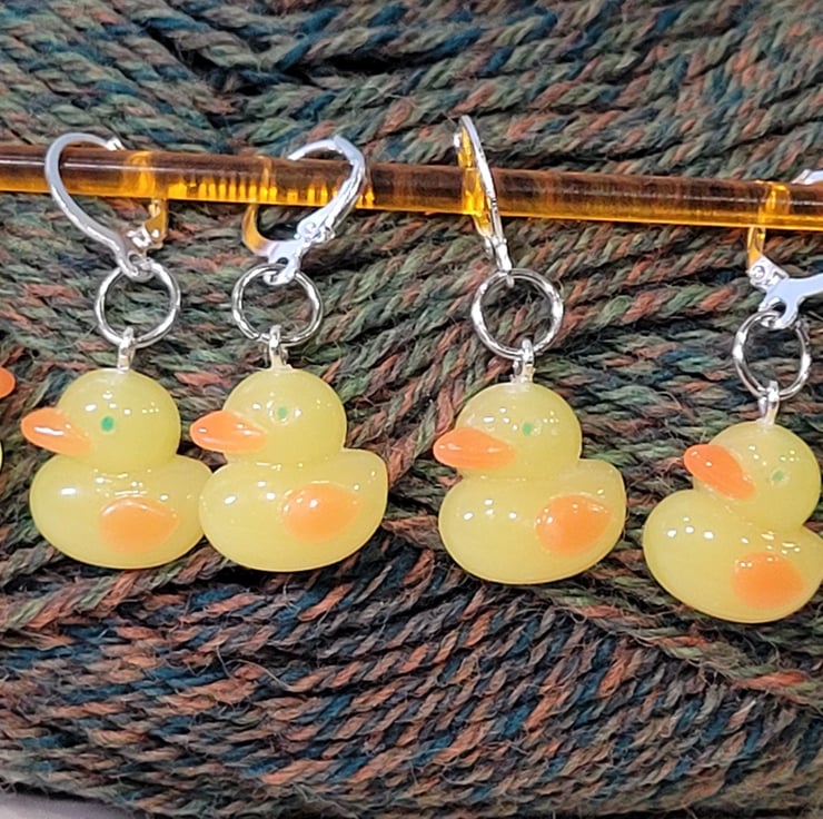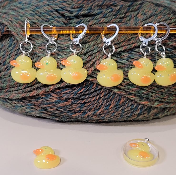 A set of 6 stitch markers to be used when knitting and crocheting. Made out of resin, each flower marker is a different colour to help the user differentiate what the marker is being used for at that time. The ducks are all yellow. The set can be regular or glitter. Please select which set you want above.