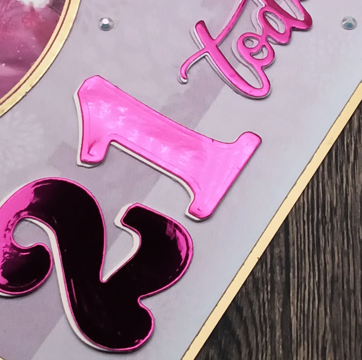 Glamorous and gorgeous 21st birthday card. A one off design never repeated and totally unique.