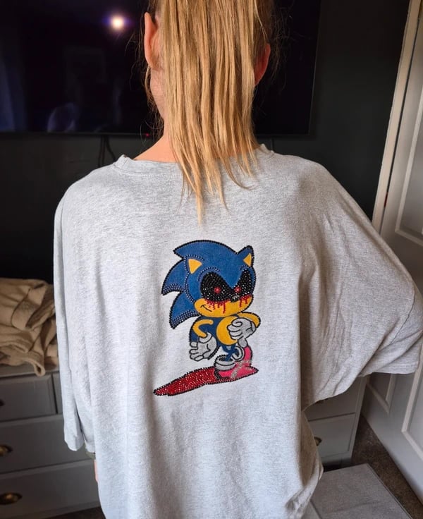 No two pieces I make are ever the same – this is a completely unique, wearable artwork, perfect for lovers of retro gaming, horror aesthetics, and alternative fashion. This t-shirt is originally from boohoo