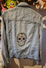 This piece was inspired by the things I’ve always loved – bold imagery, nostalgic design, and adding personality to everyday clothing. I enjoy taking familiar items like denim jackets and turning them into expressive, wearable artwork with a handmade, nostalgic feel.