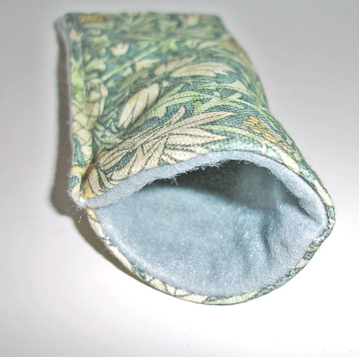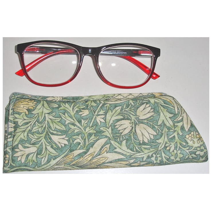 A soft sleeve for your Glasses / Spectacles. Fits a standard pair of glasses as pictured here, or slim over the counter magnifying / magnifier reading glasses - I can custom make one if you have larger glasses or sunglasses.