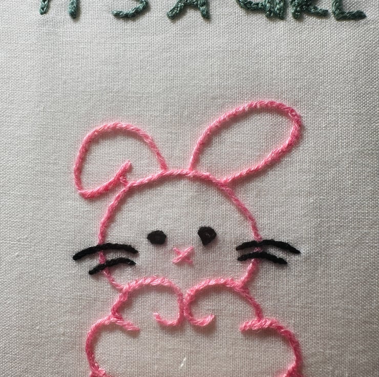 Baby girl gift, picture of a cute pink bunny rabbit and it’s a girl, embroidered