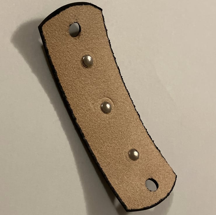 Shape: Rectangle ... Size: roughly 4” ... Hand dyed Black // acrylic finishing spray to seal in leather dye