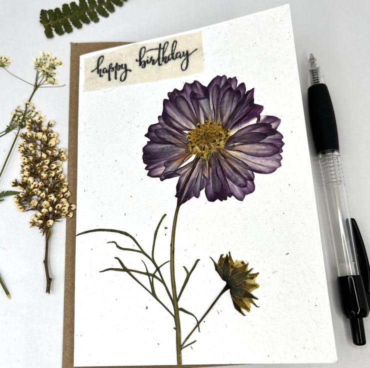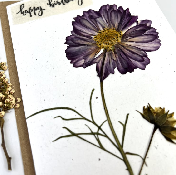 All my cards are thoughtfully made by hand with traditionally slow pressed flowers and foliage. Each card is one of a kind making them extra special.