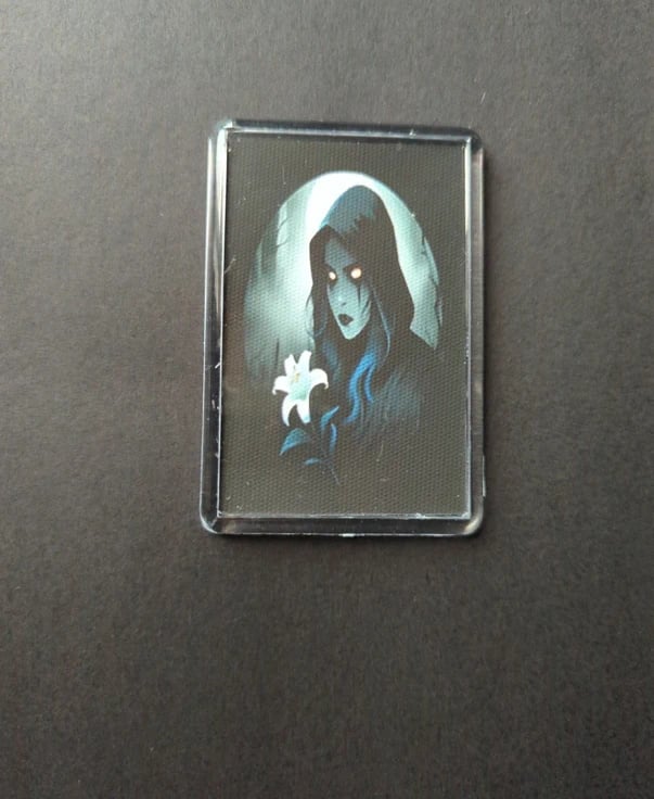 Moonlight Reaper Fridge Magnet – Gothic Hooded Figure & Lily Art – Mystical Acry