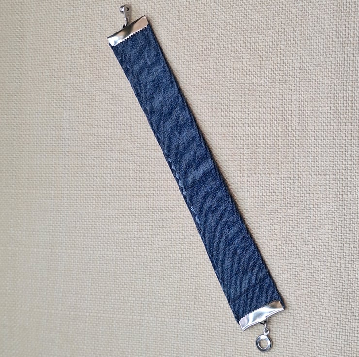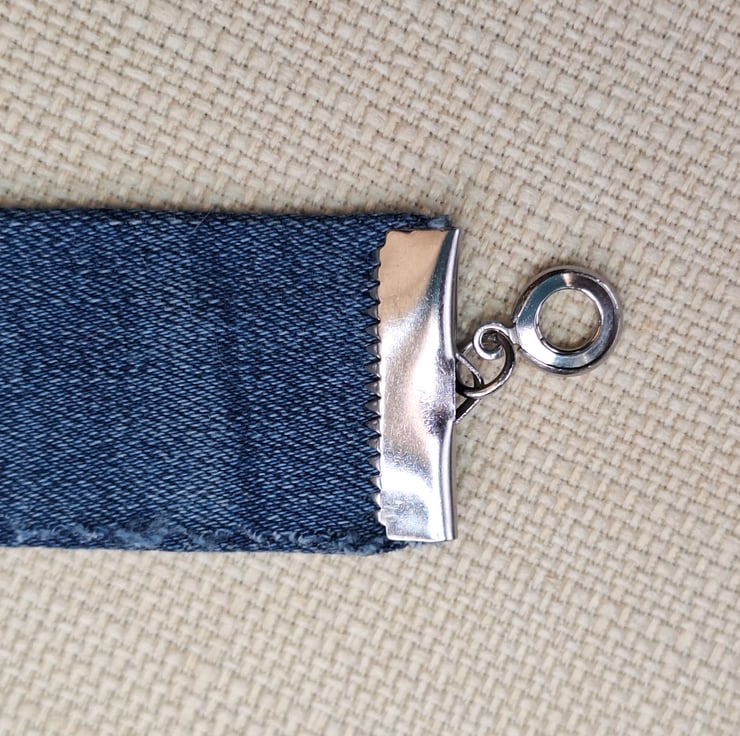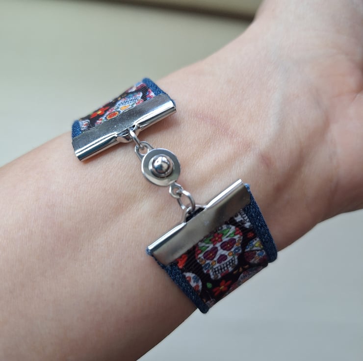 This bracelet began life as a pair of old jeans, destined for the bin. But I saw potential – a chance to transform waste into wearable art. Inspired by the vibrant energy of Día de los Muertos and the rebellious spirit of biker style, I stitched together denim and skulls to create something bold and meaningful.