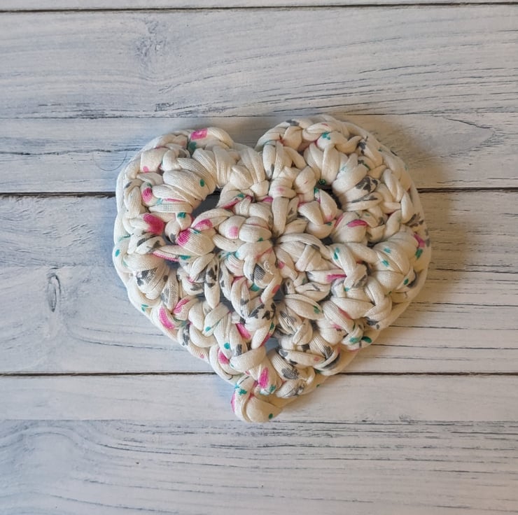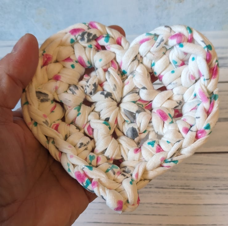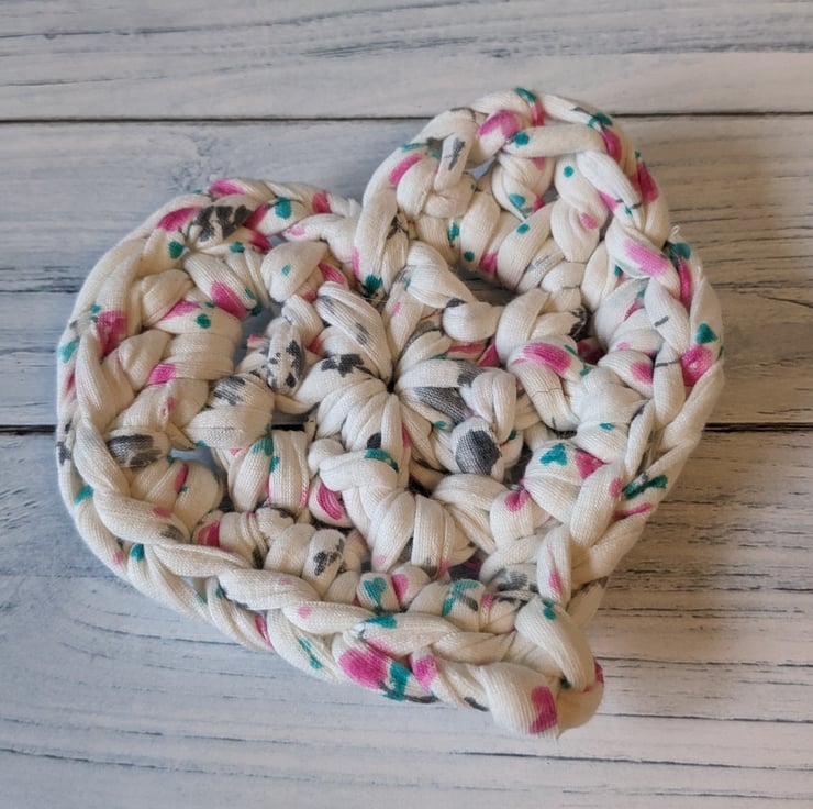 Heart coaster, chunky coaster, small mat, valentine gift, recycled T shirt yarn