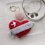 A tiny crocheted baby red squirrel hiding inside a tiny crocheted acorn basket. Lift the lid and out pops the squirrel.