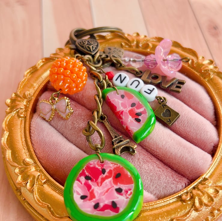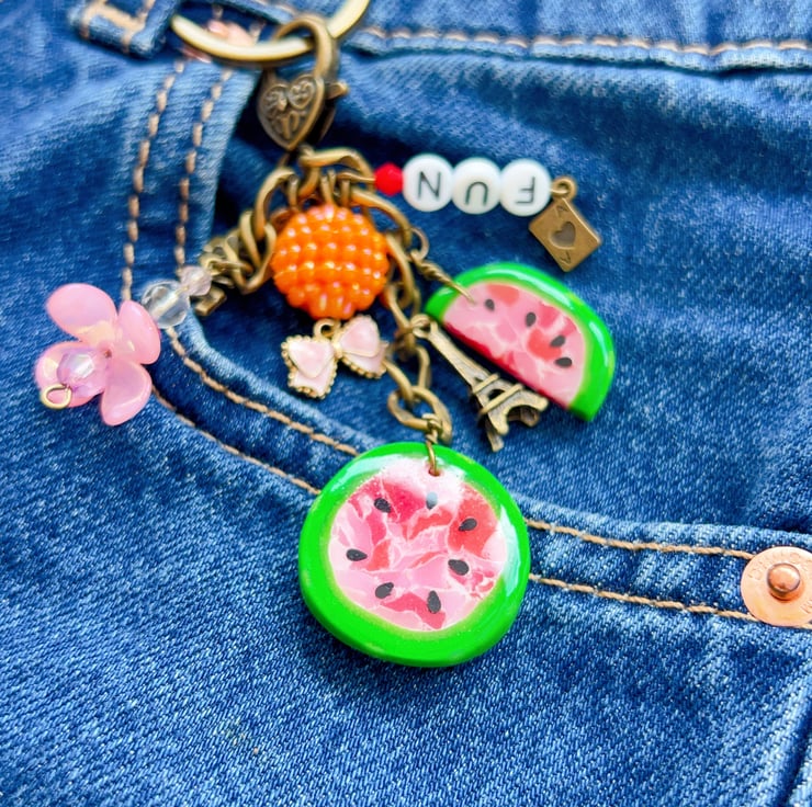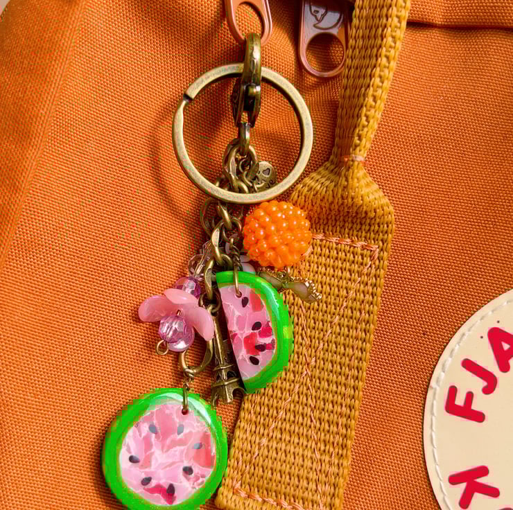 A bright, playful keyring that makes your keys or bag easy to spot. This watermelon charm is made to add a little colour and “summer mood” to everyday life — without being flimsy or boring.