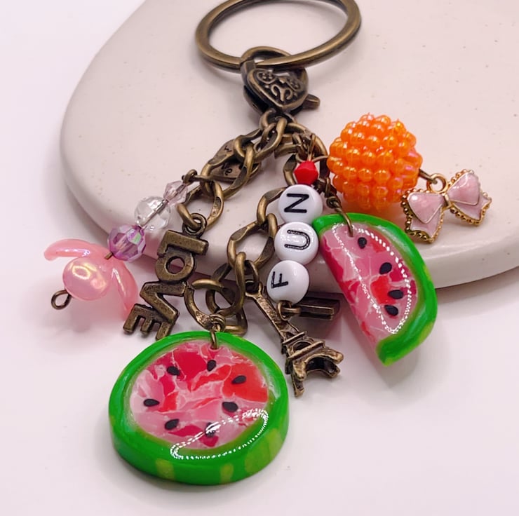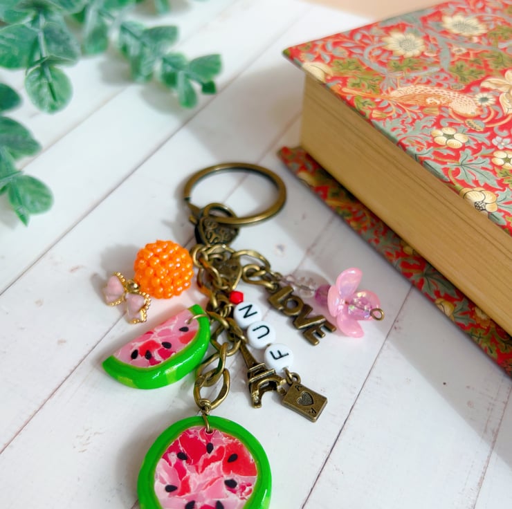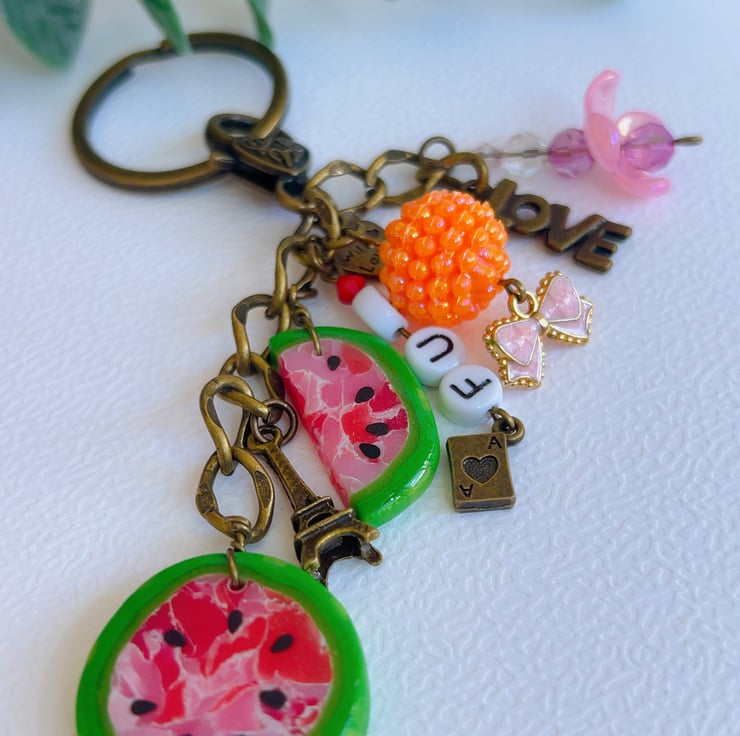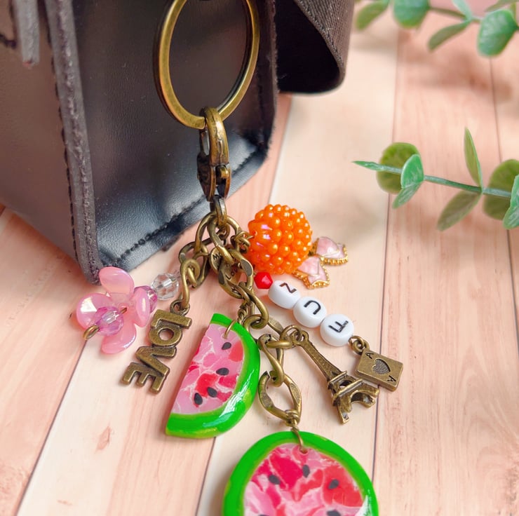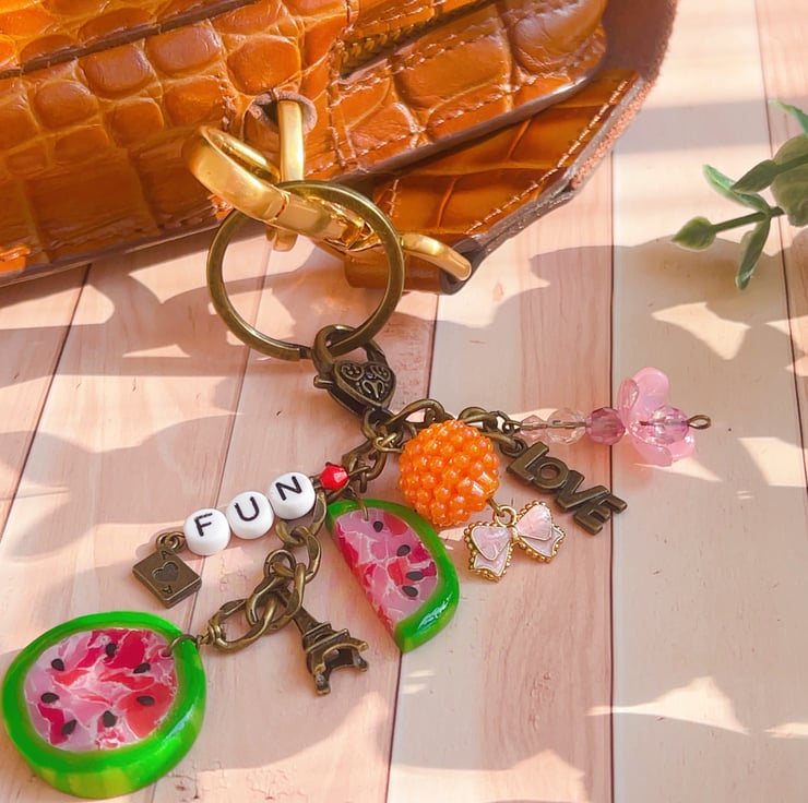 -1 handmade keyring / bag charm with multiple charms (as shown in the photos)