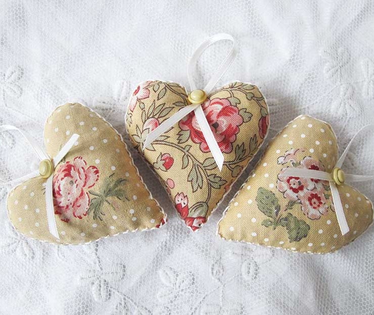 I have a long standing love of lavender and harvest it each year from my garden. Together with my ever growing collection of beautiful fabrics these little hearts help me use up my left over fabric pieces while adding some wonderful fragrance to the home. The scent lasts a long time but to freshen it you can gently squeeze the lavender bag to crush some of the flower heads and release more scent.